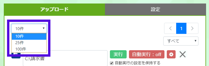 自動でアップロードを実行する場合には、自動実行ボタンを押して状態をonへ切り替えてください。
