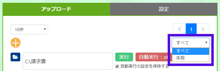 すべてのフォルダか、実行に失敗したフォルダのみを表示するか切り替えることができます。